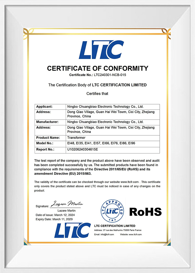 Ningbo Chuangbiao Electronic Technology Co., Ltd. Telah Menjalankan Pemeriksaan Dan Ujian Kualiti Yang Ketaap Pengubah Jenis Pin Untuk Memastikan Produk ITU Mempunayai Prestasi Dan Kebiller Syarikat Mengikuti Keperluan Sistem Pengurusan Kualiti ISO 9001 Untuk Memastikan Setiap Pautan Dalam Proses Pengeluaran Memenuhi Piawaian Antarabangsa. Di Samping ITU, Produk INI Juga Mematuji Pensijilan Perlindungan Alam Sekitar Rohs Dan MemenuHi Piawaian Perlindalangan Alam Sekitar Antarabangsa, Mencerminkan Penekanan Syarij.